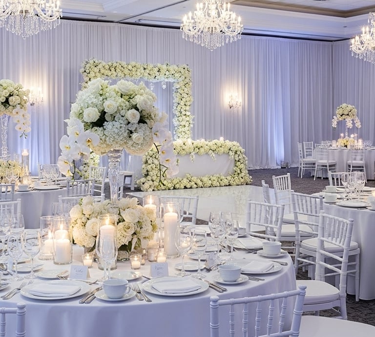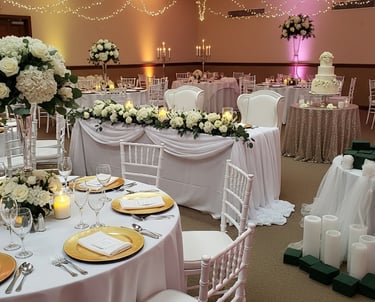 Nous assurons la décoration complète et l’installation de votre espace de mariage, qu’il s’agisse d’une salle, d’un espace en plein air ou d’un lieu de réception privé.